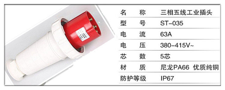 Tritai STE ST-035 63A three-phase five-wire industrial plug 5P6H415VIP67