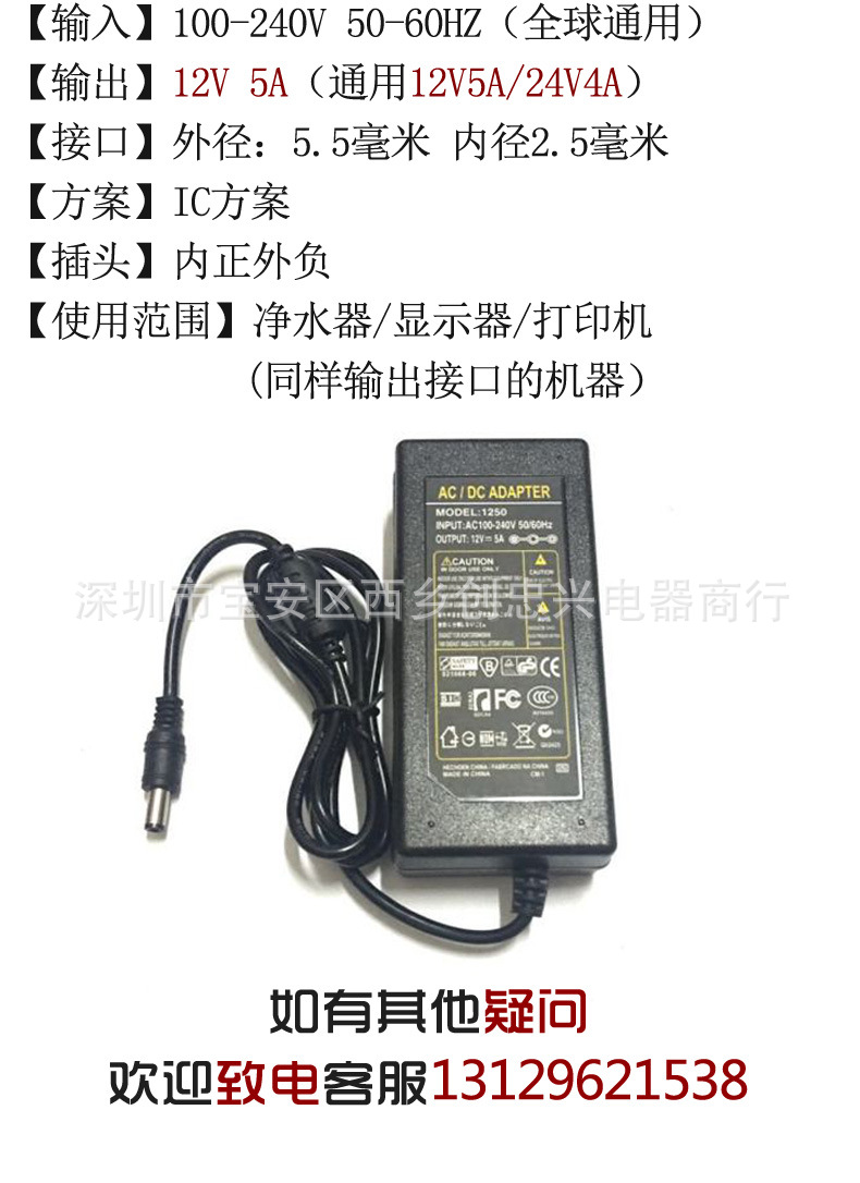 12V5A switching power adapter LCD power supply ED light bar power supply 12V5A adapter