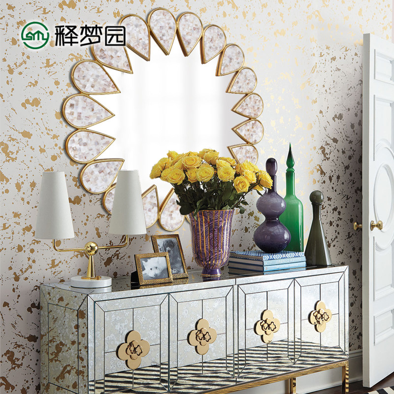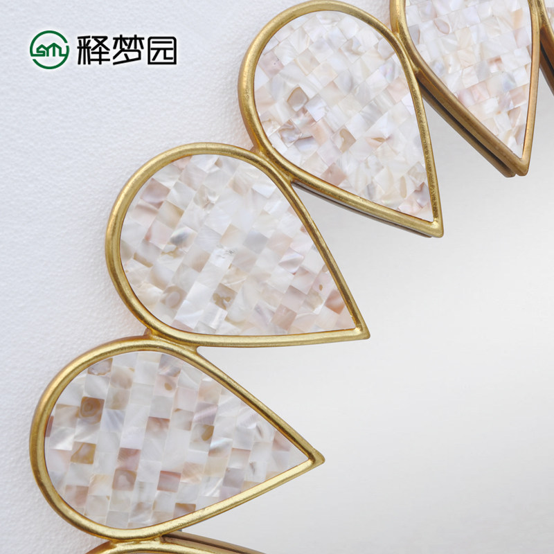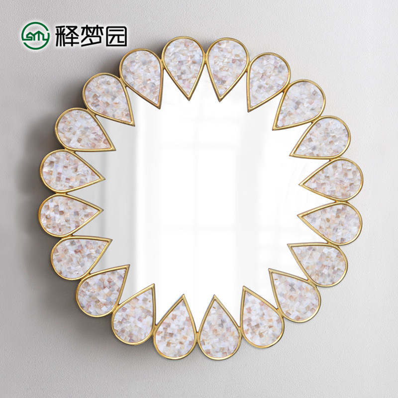European style makeup mirror American bathroom mirror wall hanging mirror bathroom mirror round entrance decorative mirror paste shell 2007