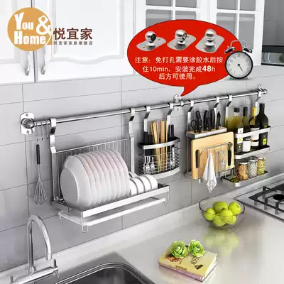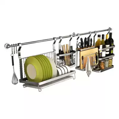 Stainless steel kitchen rack kitchen storage supplies household book wall-mounted non-perforated seasoning storage bowl rack
