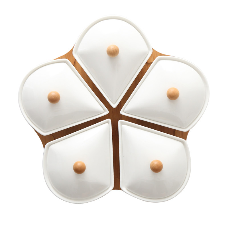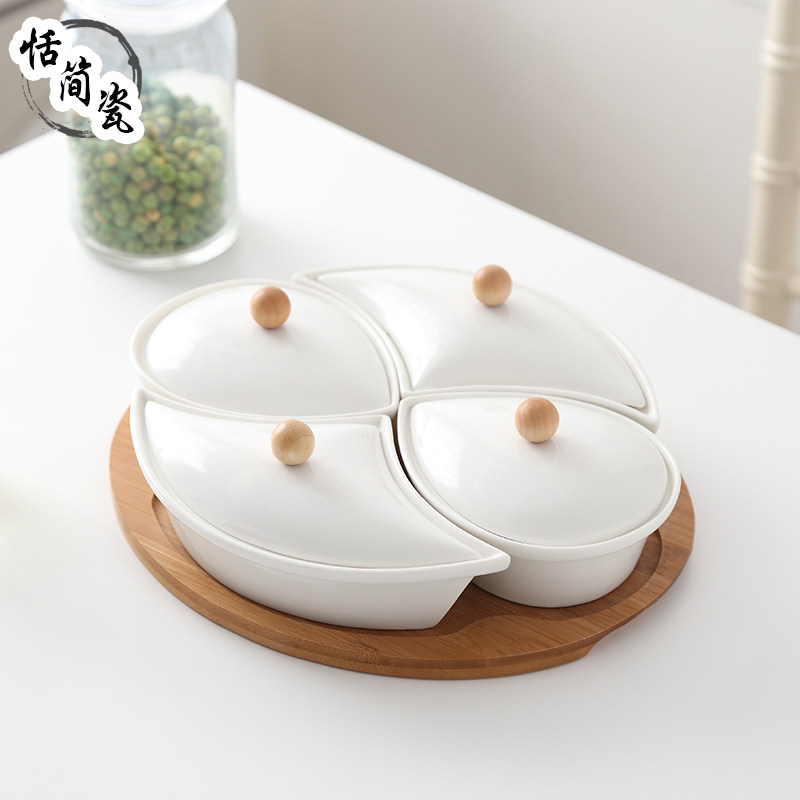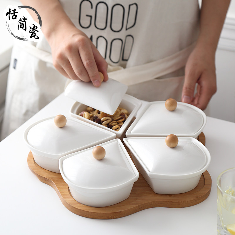 Ceramic Dried Fruit Pan Modern Living Room Dessert Tray with lid Snack Melon Seeds Candy Pan Creative Nordic Nut Tray