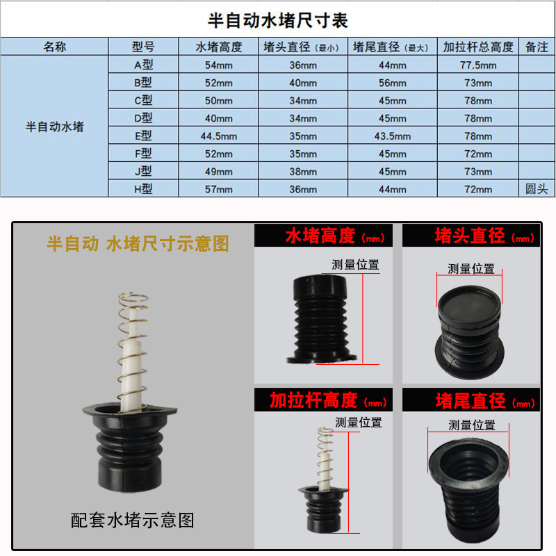 Semi-automatic double-tank washing machine drain valve spool water plug water seal Rubber plug drain suction bullet spring seal ring water plug accessories