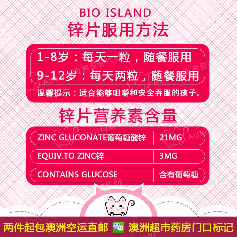 AUkitty Australia bio island children's zinc supplement chewable tablets to correct the diet to increase immunity and help development