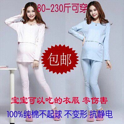 Add Fat Overweight Pregnant Woman Autumn Clothes Sanitary Pants Suit Pure Cotton Autumn Winter Pregnant Woman Breastfeeding Month Postnatal 200 kilos