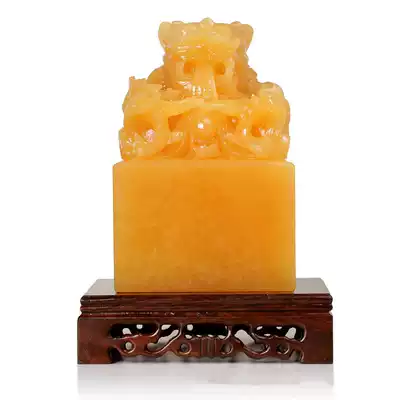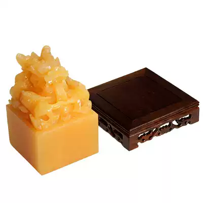 Natural yellow jade dragon seal jade seal to recruit money to prevent the small man Wang Guanyin office study auspicious ornaments