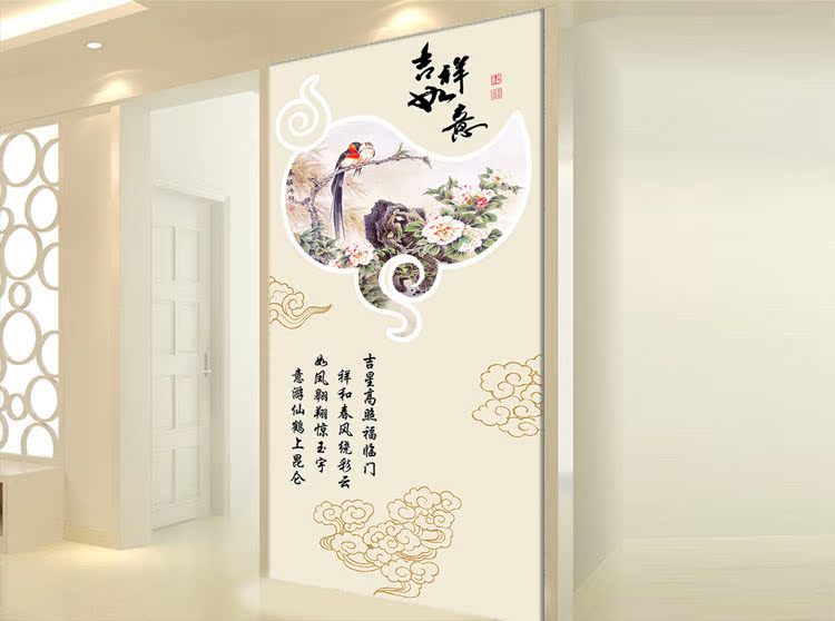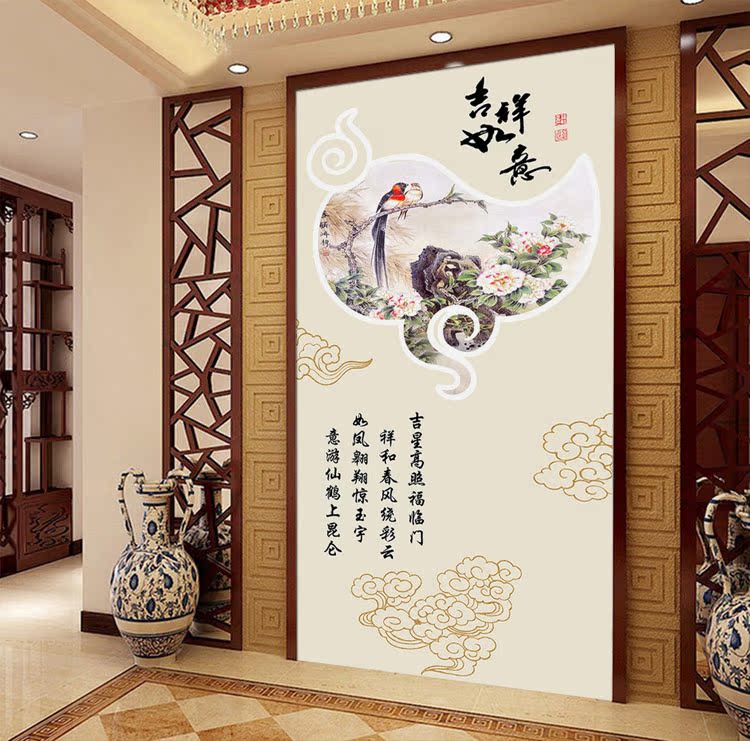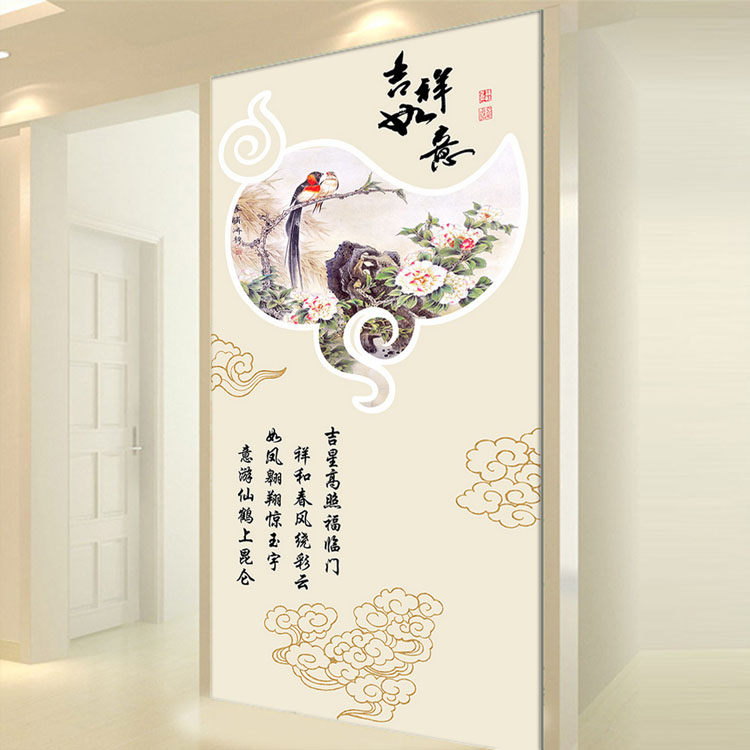 Art Glass Screen Partition Chinese Style Genguan Engraving Crafts Elegant Style Auspicious Ruyi Cloud