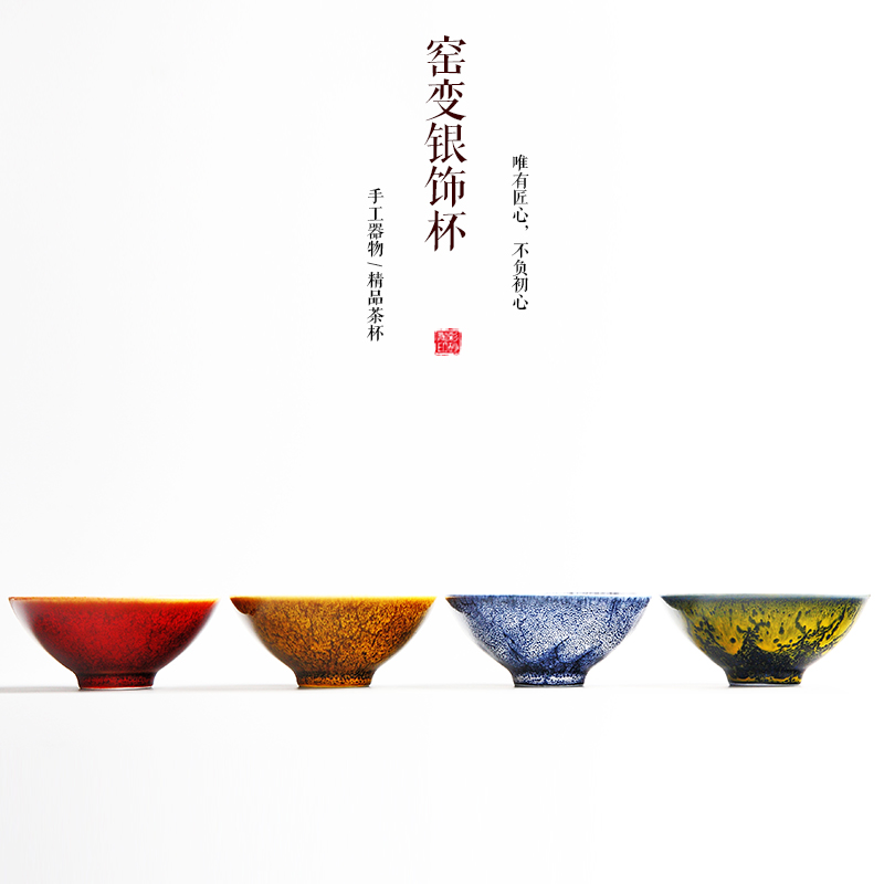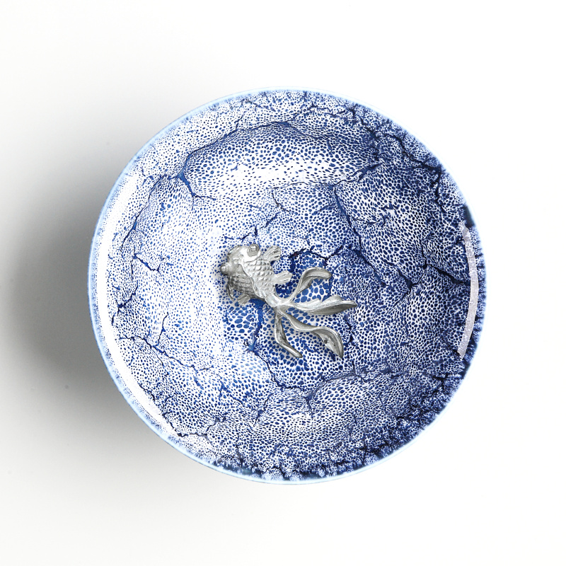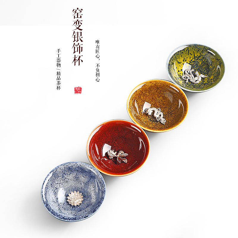 Hand-inlaid silver-silver-kiln ceramic tea cup silver fish cup tea bowl tasting tea drinking cup Tianmu Jianchu Master's single cup Gongfu tea furniture