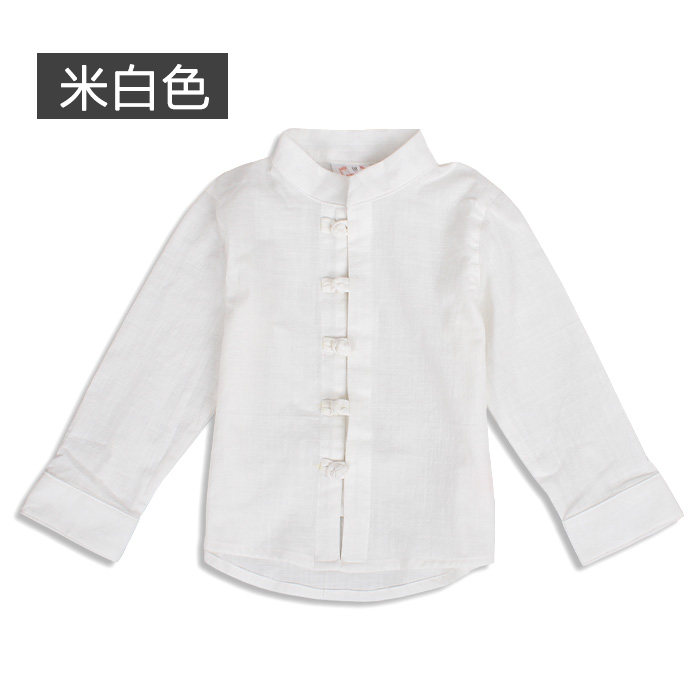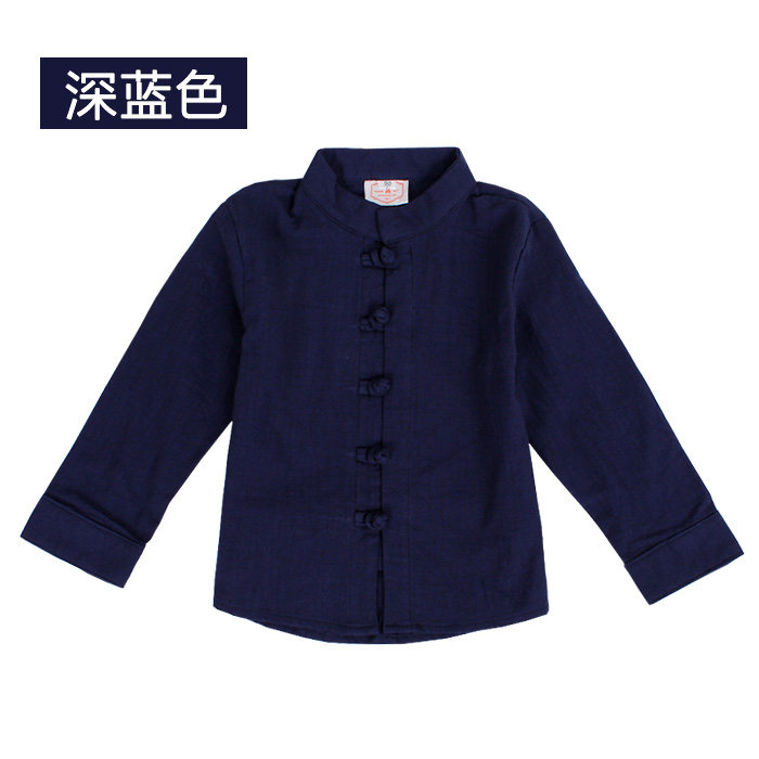 Boy shirt with long sleeves cotton numb baby lining clothes spring and autumn children suit retro disc buckle upright collar dont blouses Handwear