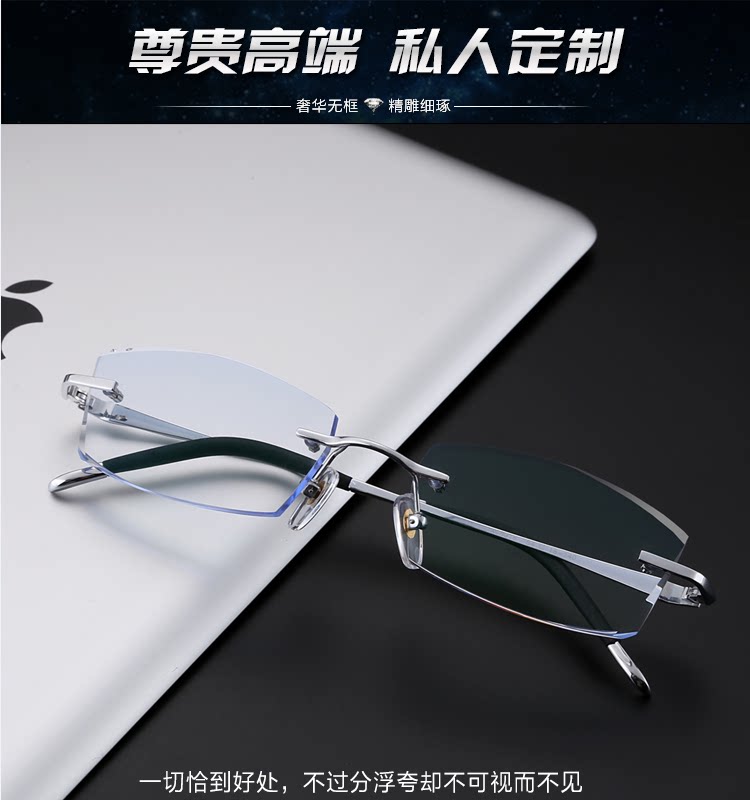 With color-changing myopia glasses men's finished frameless glasses frame men's myopia trimmed glasses men's radiation protection flat light women