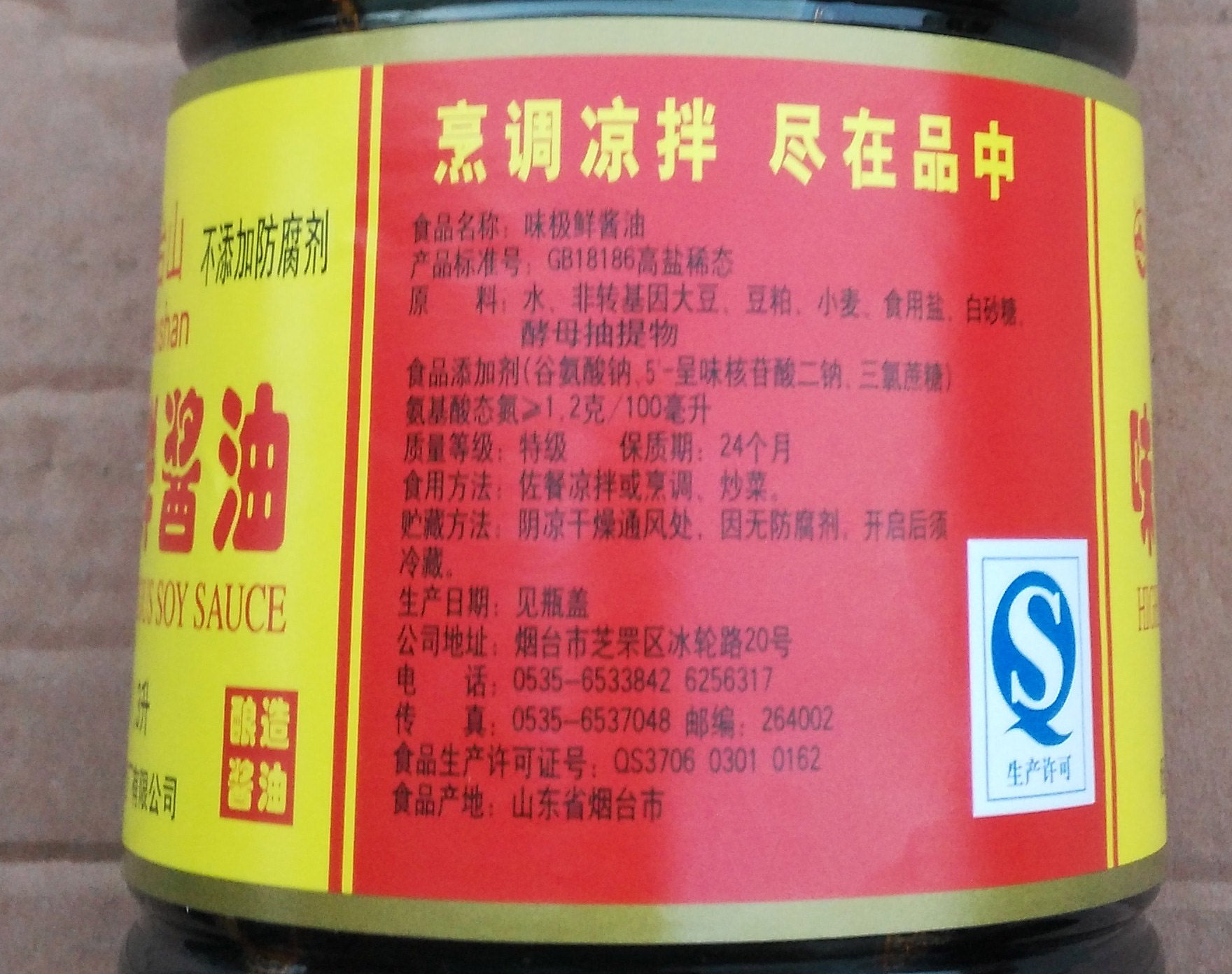 Yantaishan brand taste of extremely fresh soy sauce 1 3L Yantai veteran brewing soy sauce without preservatives