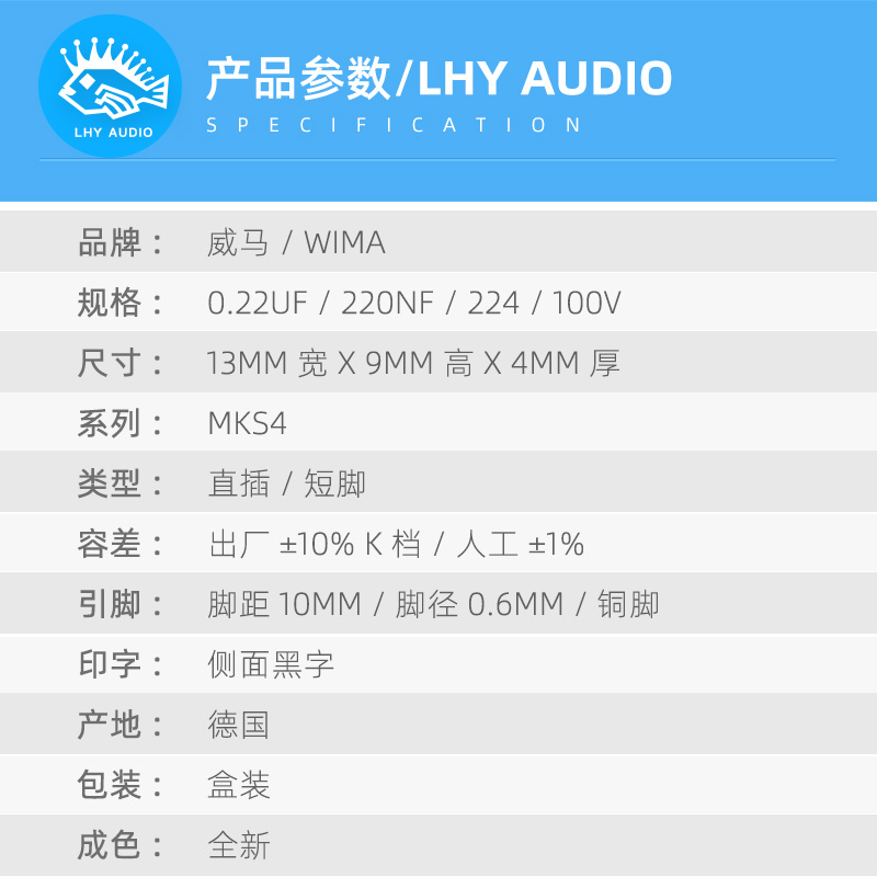 0 22uF 100v MKS4 Original German WIMA Weimar 224 220nF Fever Audio Promise Capacitor