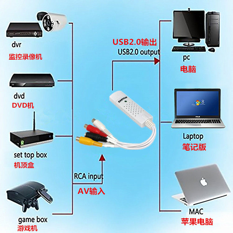 Free Drive USB Video Capture Card Notebook 1 Road HD USB Monitoring Acquisition card AV Computer Audio Video TV-Taobao