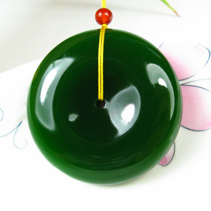 Xinjiang and Tian Yubi jade green buckle pendant superb jade safe button pendant spinach green and green buckle male jade pendant