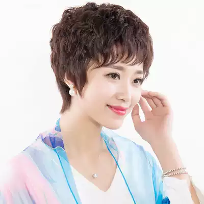 Wig female short hair short curly hair full head cover middle-aged and elderly mother wig lifelike natural real hair silk hairstyle