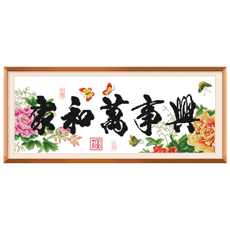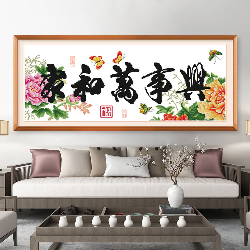 Cross embroidered 2022 new line embroidered home and masterroom flower open rich and expensive Mudan flowers Chinese wind home embroidery
