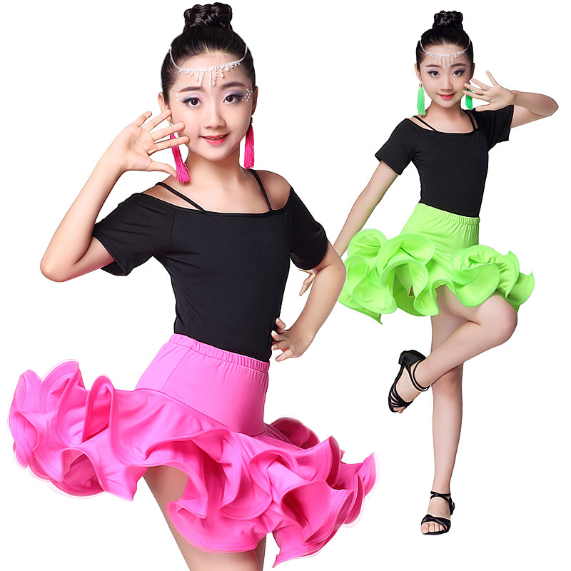 New Latin dance skirt children's Latin dance clothing girls dance short-sleeved exercise clothing performance clothing autumn and winter long-sleeved