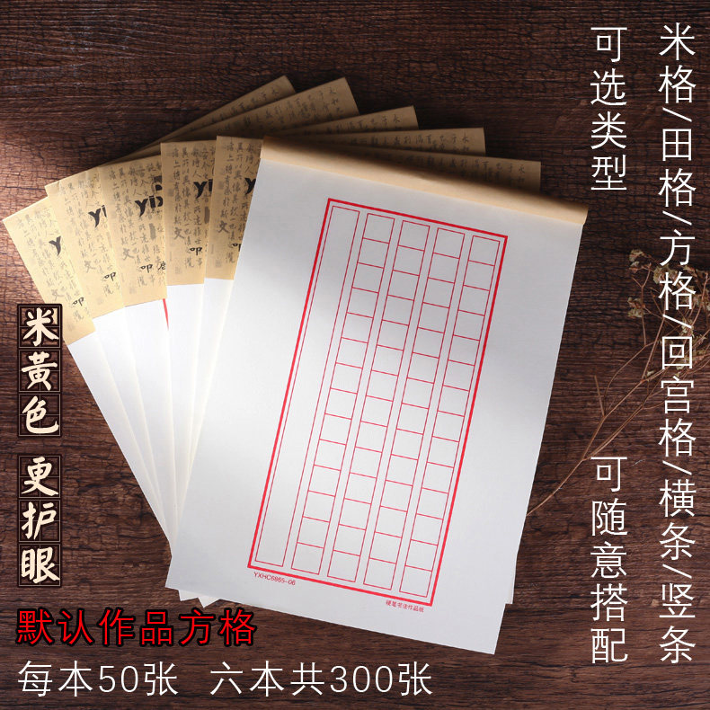 Beige thickened 300 pieces of works 60 squares checkered hard pen Calligraphy practice paper Pen practice book Tang Poetry and song words Pen Calligraphy examination Creation works Paper does not seep