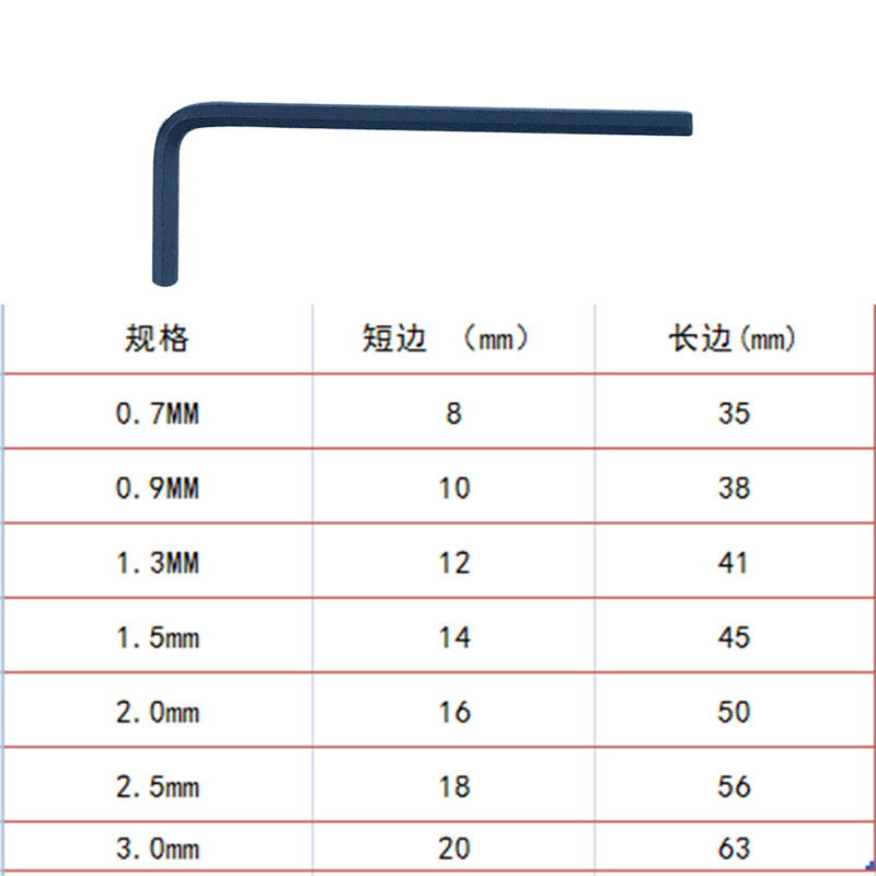 Taiwan L-type six-angle wrench M0 7 0 9 1 3 1 5 2 2 5 3 4MM FLAT HEAD METRIC