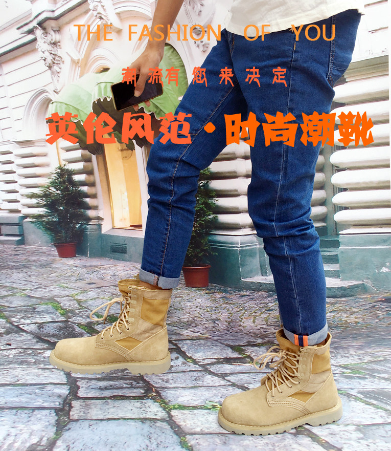Couple high-top men's boots top layer cowhide desert boots tooling boots autumn and winter leather Martin boots women