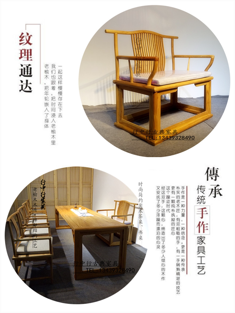 New Chinese style master chair solid wood armchair old elm tea table master chair solid wood antique tea table chair large Zen chair