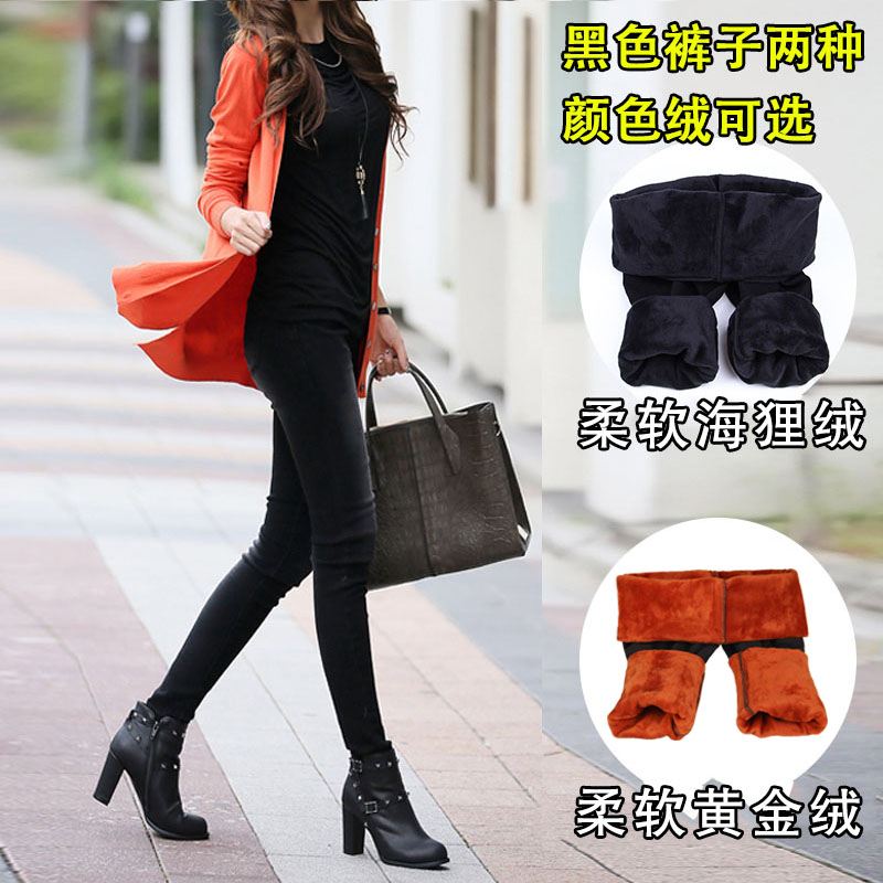 Gush thickened inner lap pants external wearing lady high waist and long pants tight fit large size size trousers autumn winter warm women pants