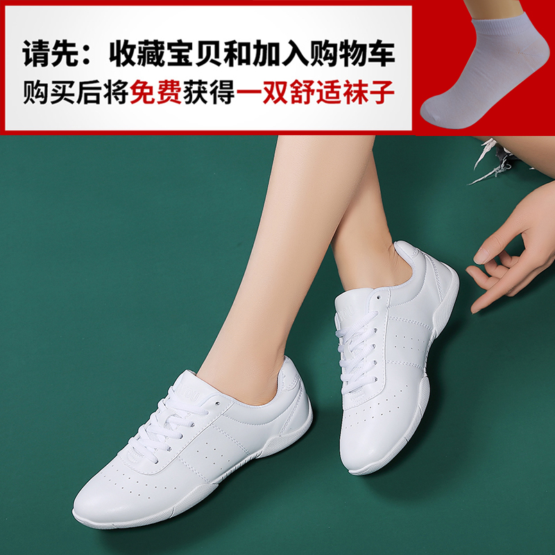 Competitive Bodybuilding Playground Shoes Men And Women White Dance Shoes Genuine Leather Soft-bottom Adult Fitness Training Shoes Children Cheerleaders-Taobao