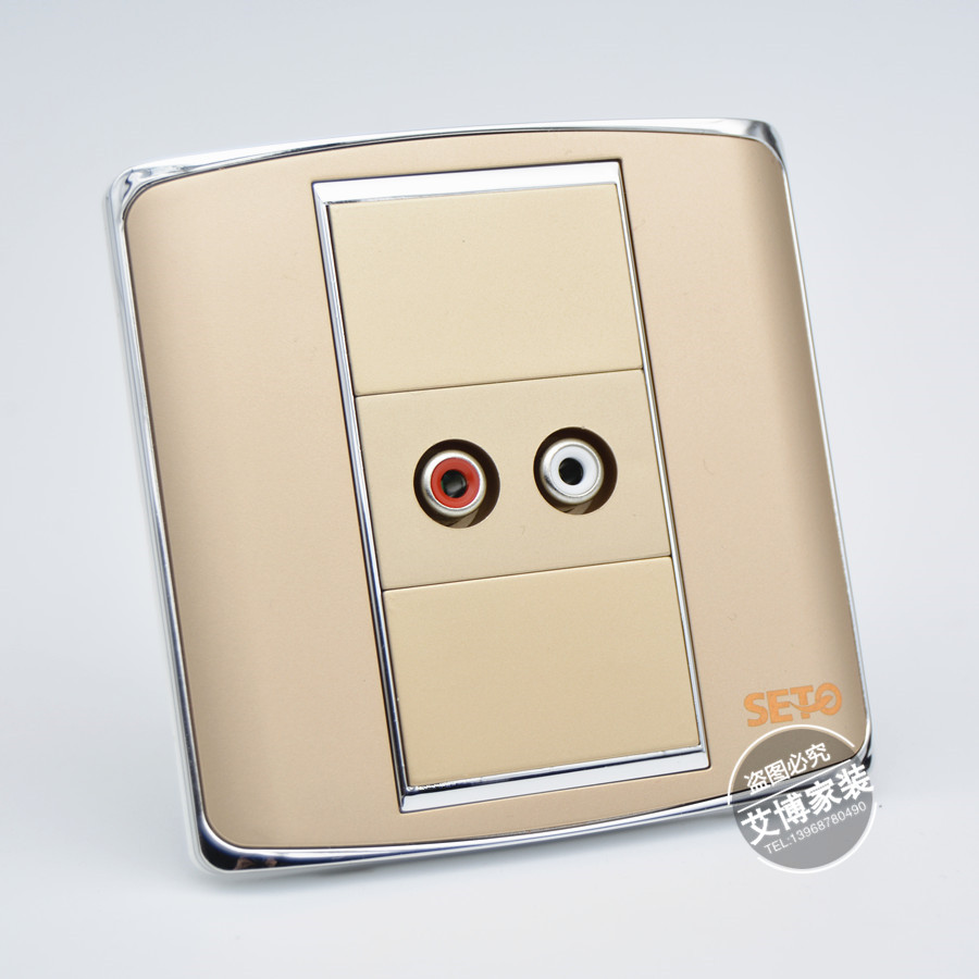 Type 86 Champagne Golden Multimedia Audio Socket Free AV Red White Double Lotus Audio Wall Switch Panel