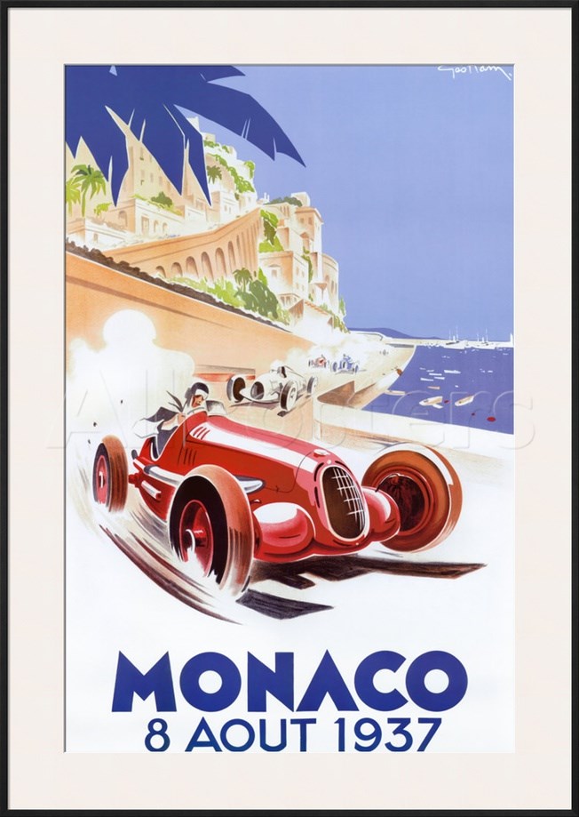 Vintage Monaco Grand Prix Poster Racing Cars European Travel Art Deco Narration Decorative Painting
