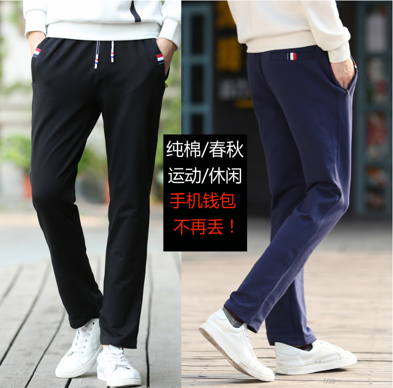 Men's cotton casual sports pants Men's trousers spring and autumn and summer thin straight loose Wei pants Off-code special pants