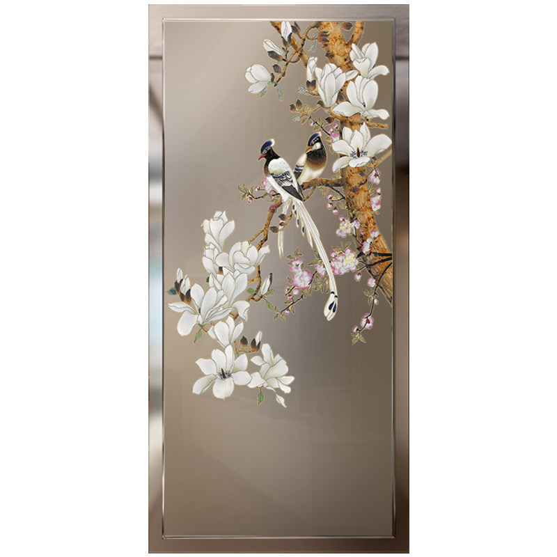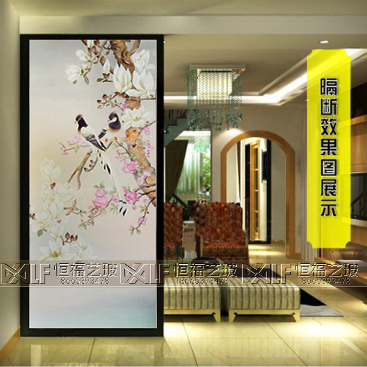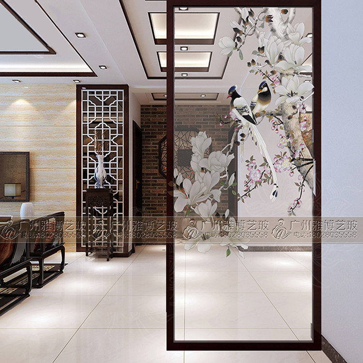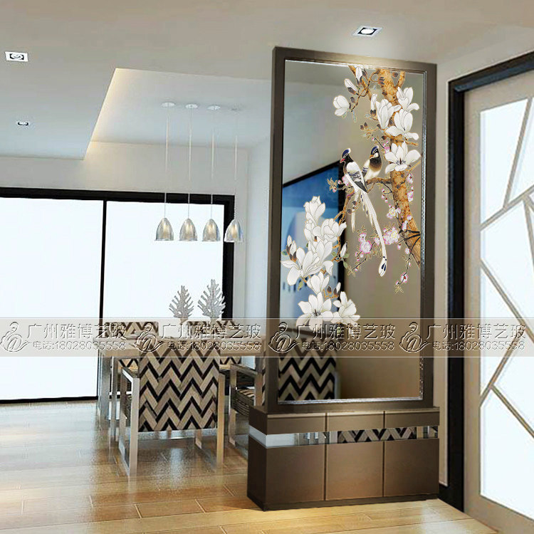 Art glass partition screen Shoe cabinet entrance background wall Living room tempered modern frosted craft glass Magpie