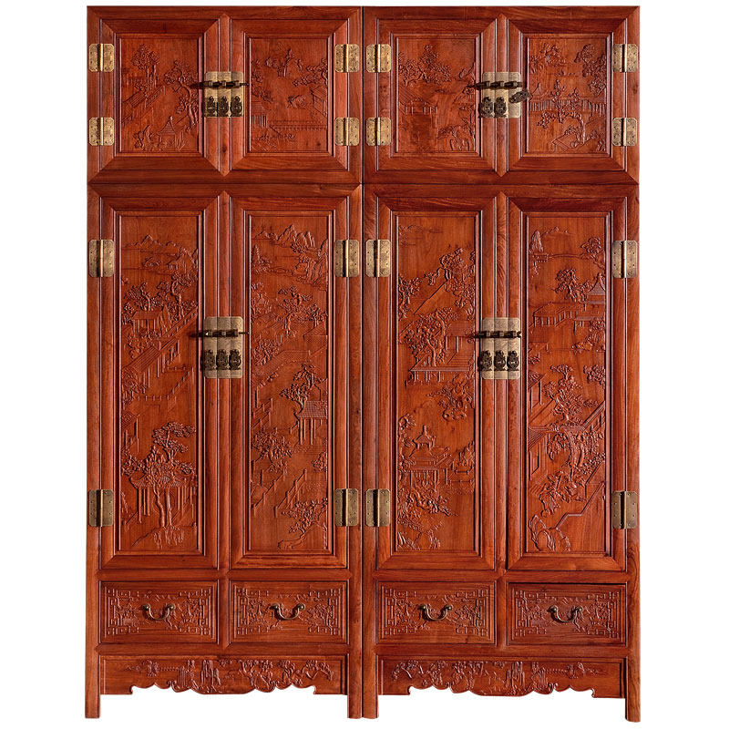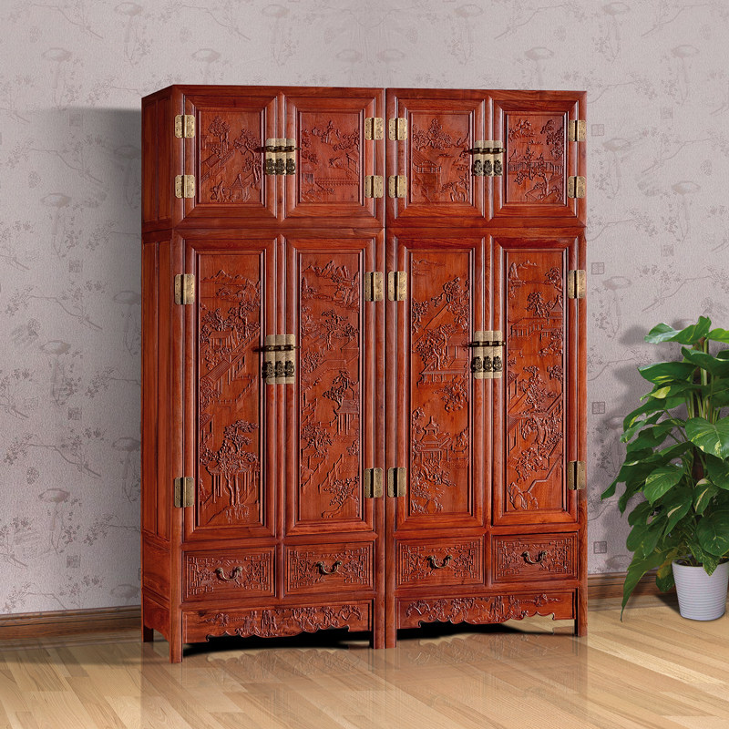 Mahogany furniture Burmese rosewood big fruit red sandalwood landscape Baizi top box cabinet Chinese style solid wood wardrobe bedroom wardrobe