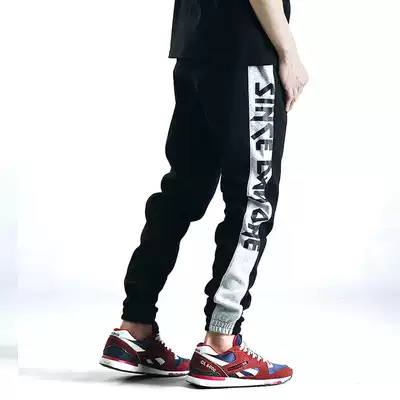 Sweatpants Men's autumn and winter plus velvet thickened drawstring pants Couple ins tide brand loose casual drawstring pants closed guard pants