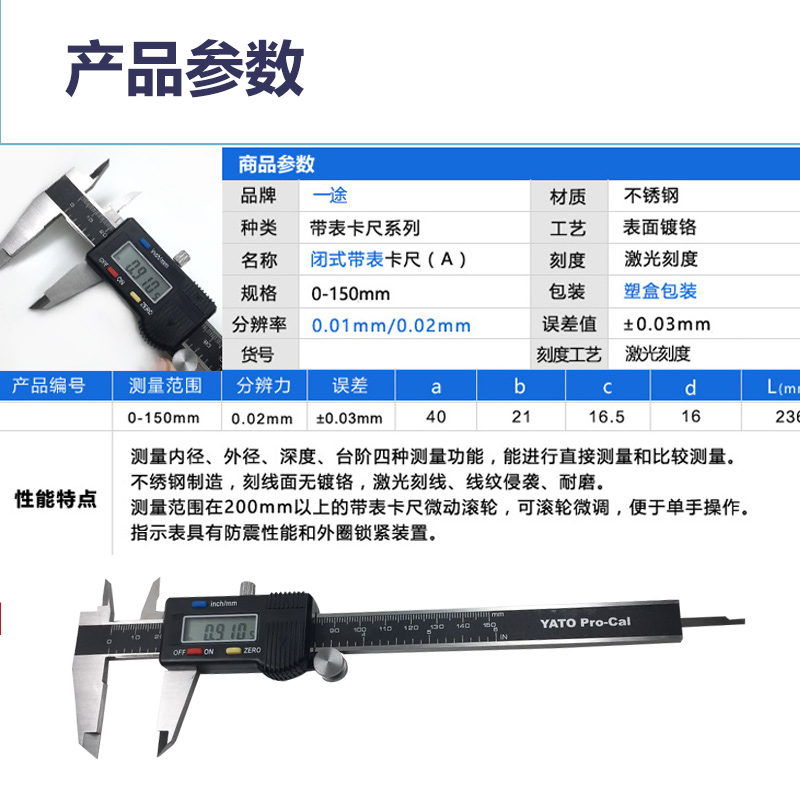 YATO gauges with 0-150mm electronic digital caliper origin stainless steel vernier high-precision measuring caliper