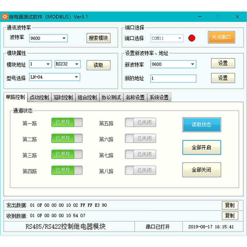 Four serial port relay module RS232 RS485 computer PLC control switch 4 MODBUS LH-04