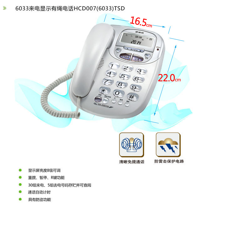 Backgammon 6033 corded telephone landline home office seat type wired telephone incoming call square white telephone - Taobao