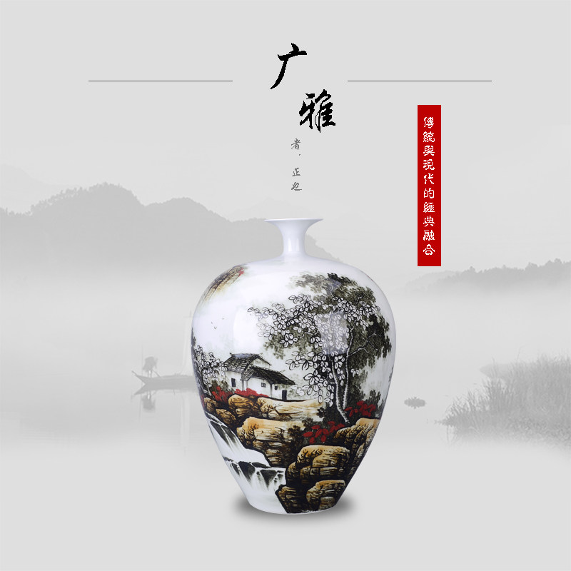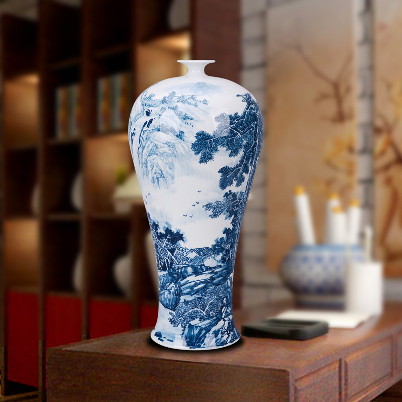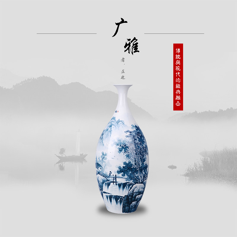 Jingdezhen ceramic large vase living room floor-to-ceiling hand-painted decorative porcelain vase ornaments high-end landscape blue and white colorful