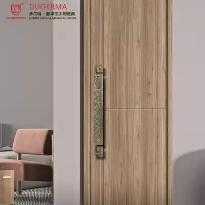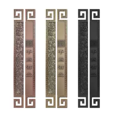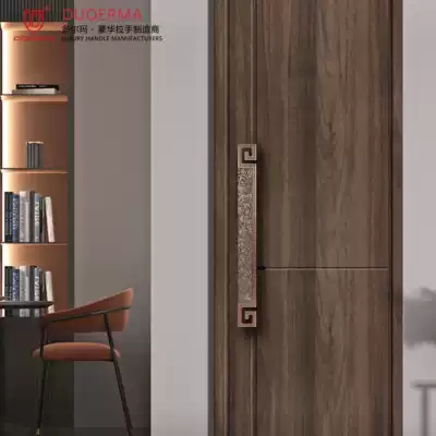 Framed glass door brass handle relief Xiangyun Chinese black copper door private room solid wood large door handle