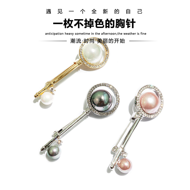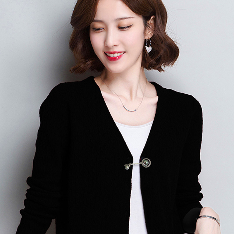 Happy Korean Pearl Key Brocky Woman Simply Decorate Needle Coat Button Accessed Sweater Shoulder Clothes