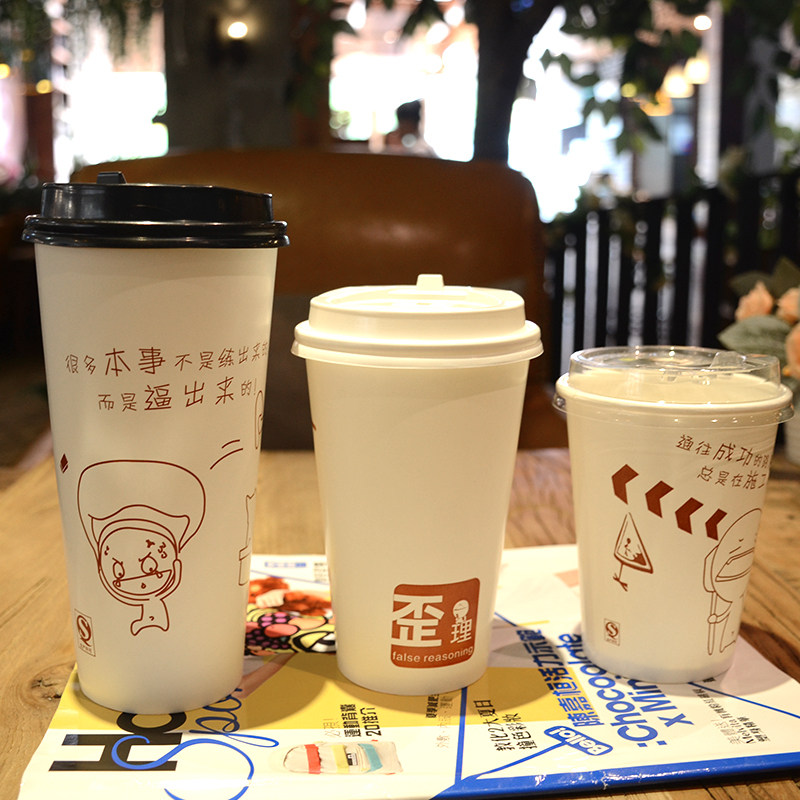 Custom disposable milk tea cup paper cup soybean milk cup creative juice cup thickened coffee paper cup hot and cold drink cup with lid