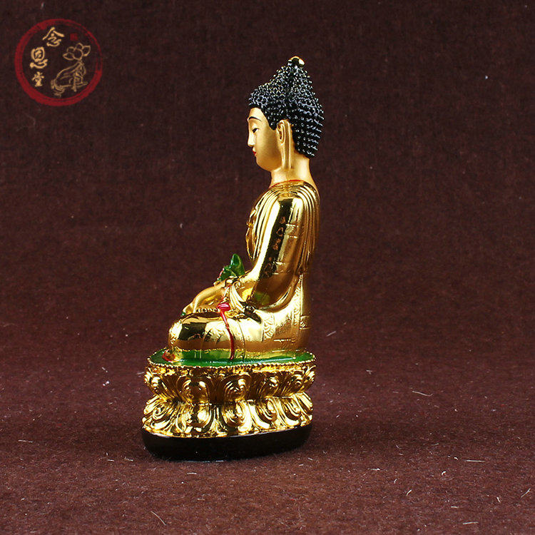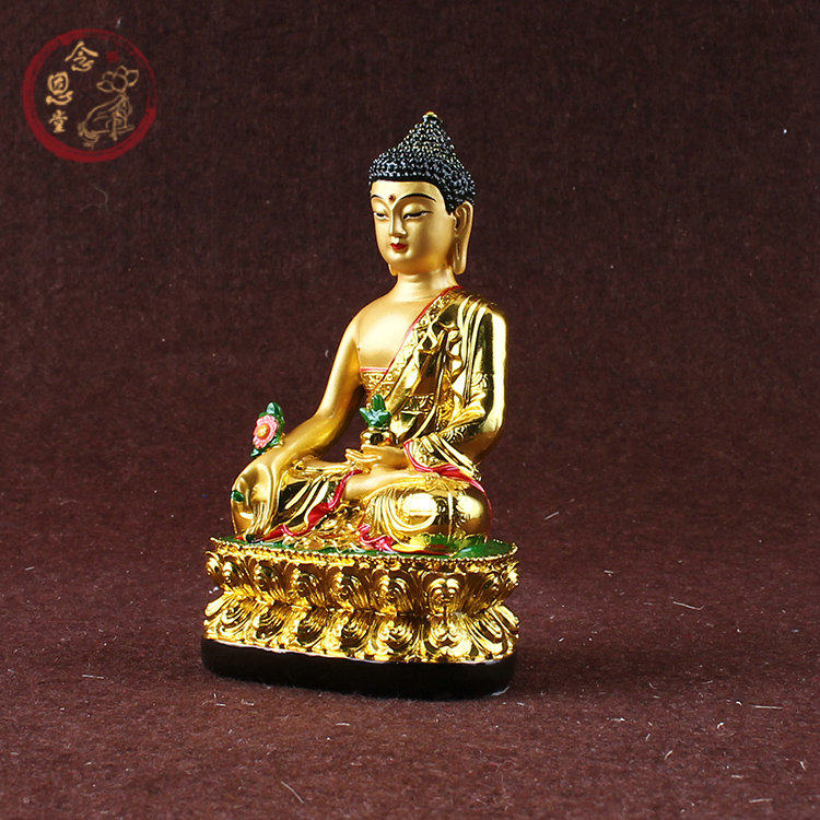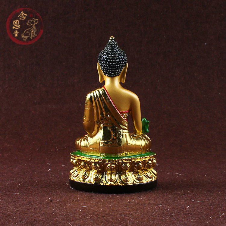 Pharmacist Buddha Statue Pharmacist Glass Light Tathagata Buddha Gilded Resin Sambo Buddha Tibetan Tantric small Buddha statue