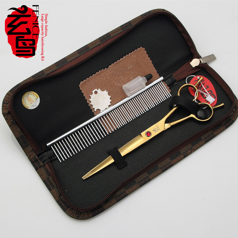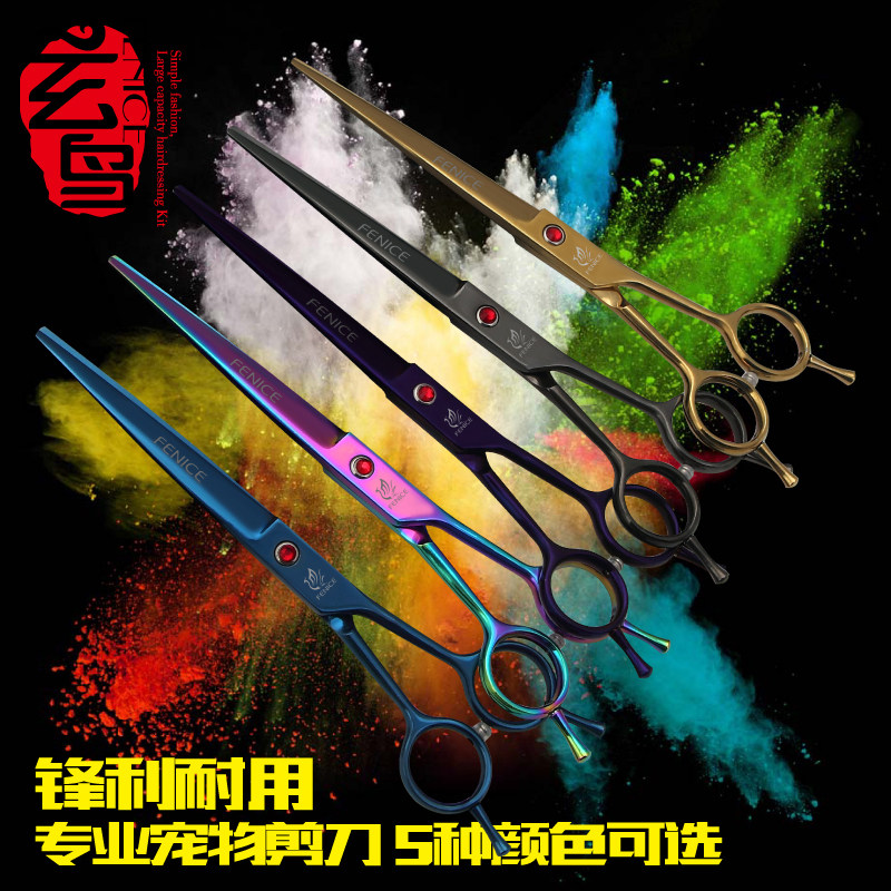 Professional pet scissors double-sided trimming shears straight cut 7 inch dog shearing scissors teddy bear grooming tools