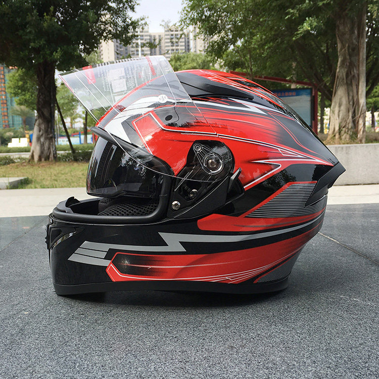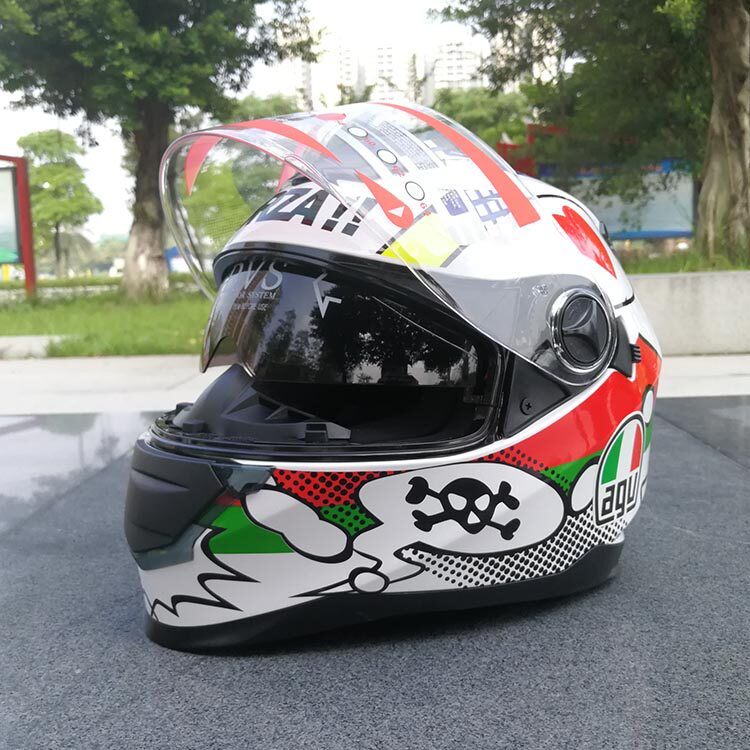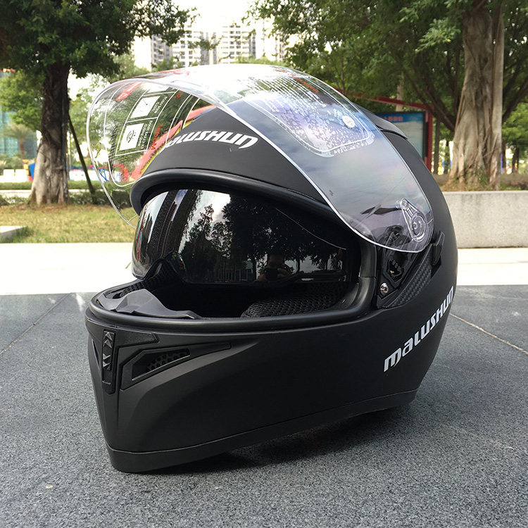 Motorcycle helmet cool personality racing men and women summer seasons full helmet pure black and white double lens sunglasses helmet
