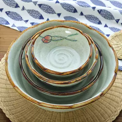 Creative retro Japanese ceramic ramen bowl large soup bowl home salad rice bowl thickened wave edge underglaze color