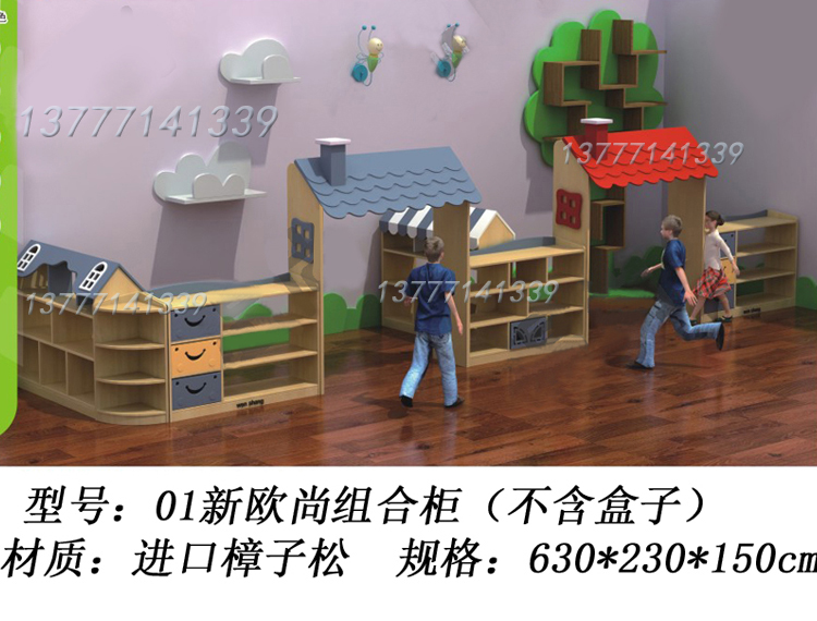 Kindergarten Zhangzi Pine Solid Wood Combo Cabinet Children Area Corner Toy Containing Cabinet Area Partition School Bag Containing Cabinet