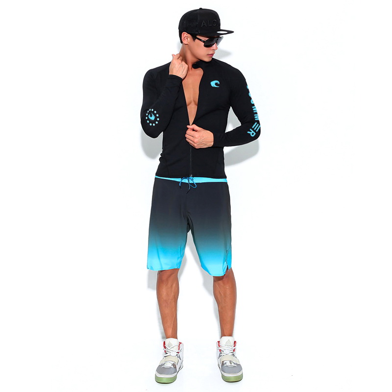 Promotion Korean version sports diving suit black male two-piece long sleeve pull chain large size elastic speed dry training swimming workout