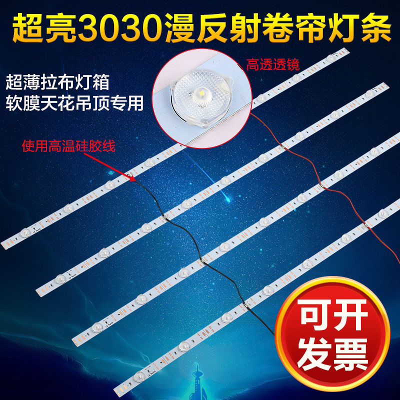 Diffuse reflection light bar 3030 card cloth soft film advertising light box LED roller shutter light bar pull cloth ceiling 12V waterproof light source