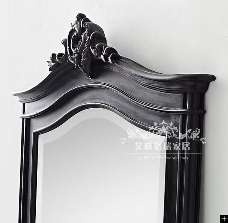 Full body mirror retro American solid wood carved full body mirror cloakroom full body mirror French style black bedroom floor mirror