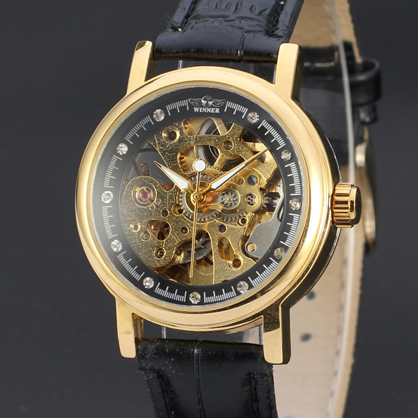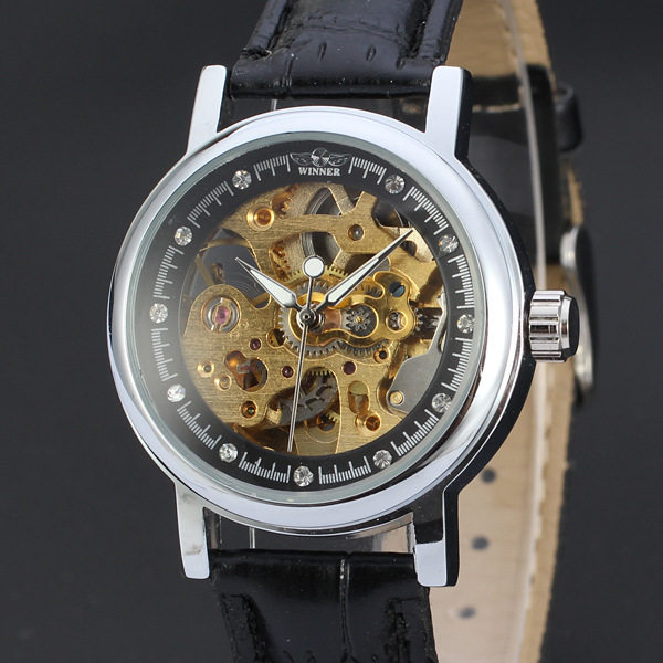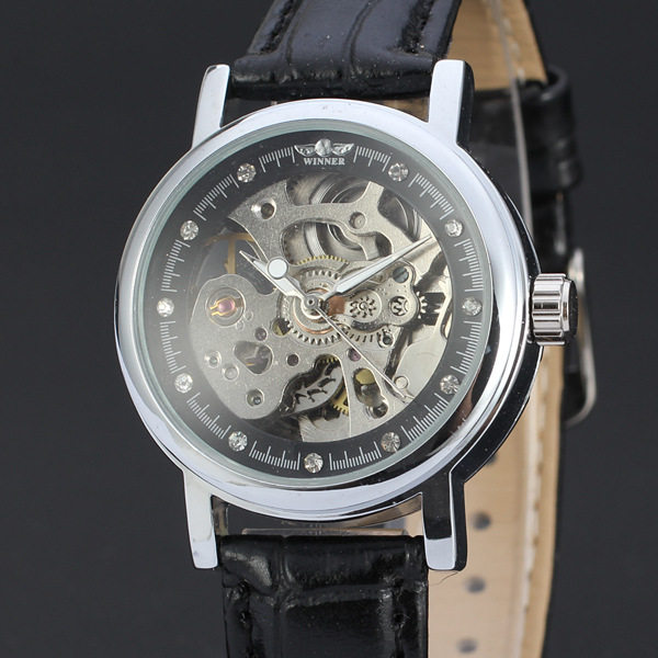 Victor's hollowed-out silver bottom male and female colourful face with drilling mechanical watches three-pin automatic mechanical belt watches 113