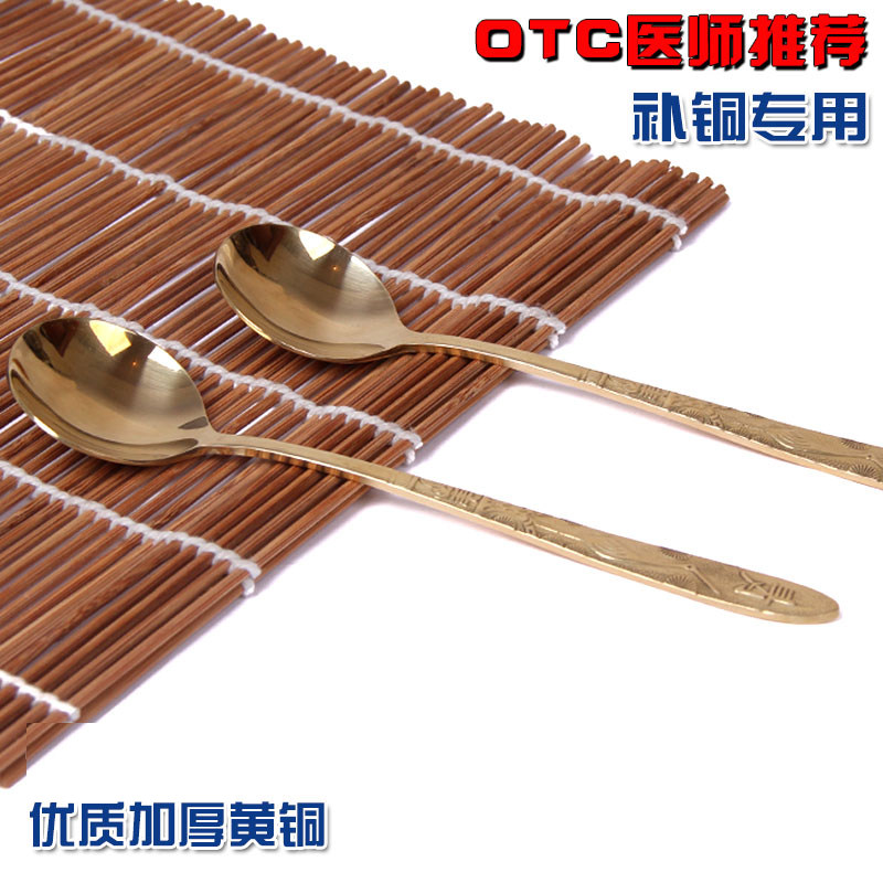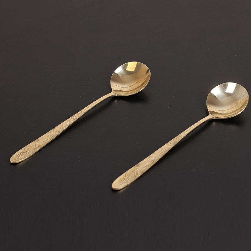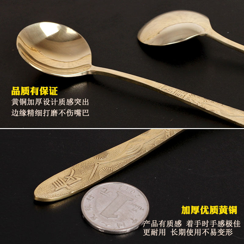 Brass spoon long handle Home cutlery pure copper thickened spoon soup spoon Western food dessert spoon Children's main dining spoon-Taobao