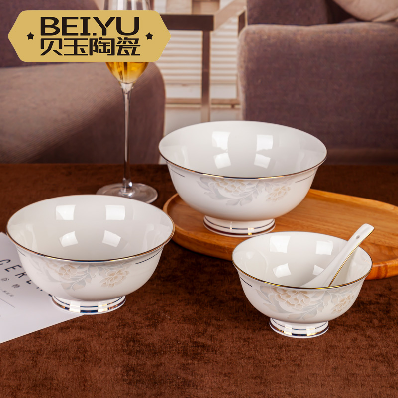 Ceramic bowl Household eating bowl Bone China high foot small bowl Rice bowl Microwave porridge bowl Beef noodle bowl Large bowl soup bowl
